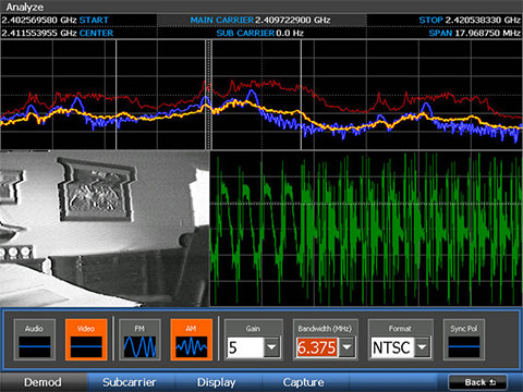 效率高:1秒內即可掃描24GHz,能夠迅速檢測出電子監(jiān)控設備的傳輸,保證捕抓到頻譜信號。